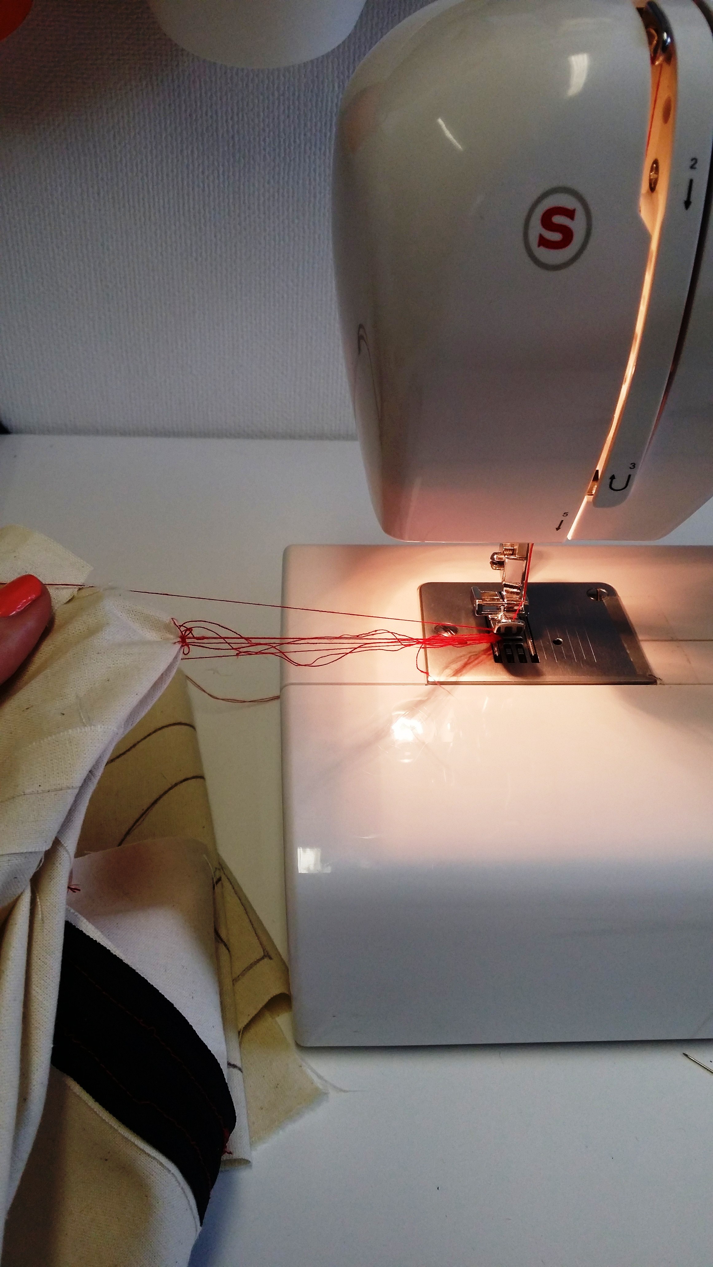 My sum total experience with sewing has been; making a rather wonky heart-shaped foam pin cushion as a child, the odd hem/repair with a hotel sewing kit and occasional button reattachment. I may even have been caught using a stapler. I’ve never had any formal training, and by george it shows.Who knew the challenge started in threading your machine? First pick your thread then do a ‘cast on’ type affair to transfer from the reel to the machine reel by holding down the foot pedal. New fancy machines should auto-stop when reached the ideal amount.